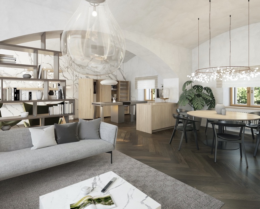 The area, which dates back to the 15th century, is surrounded by a listed wall, which enclosed whole space in a private complex with a landscaped park full of greenery. The interiors are equipped with modern and sophisticated technologies that bring the highest standard of living in the 21st century. It includes an underground garage, 24-hour reception, and CCTV.