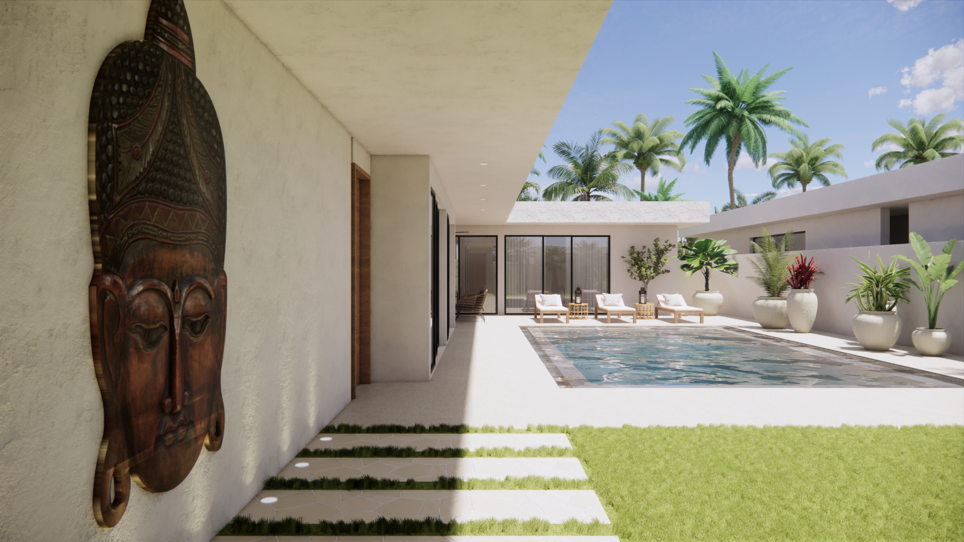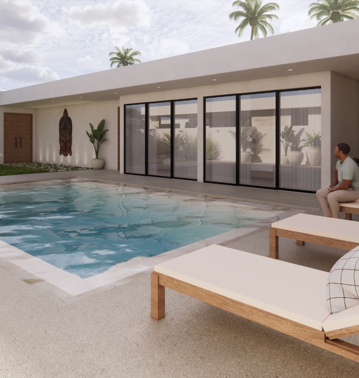 The elegant three-bedroom Lotus Villa represents an ideal blend of modern architecture, a tropical atmosphere, and timeless design. With a usable floor area of 117.93 m², it offers comfortable, well-thought-out, and highly functional living that meets the expectations of both families seeking a private home and investors considering a profitable opportunity in one of the most desirable areas of Koh Samui. The centerpiece of the villa is a spacious living area with a kitchen, seamlessly connected to the terrace and swimming pool. Three bedrooms, each with its own en-suite bathroom, ensure absolute privacy and comfort for all household members and guests.The villa features a private 45 sqm swimming pool surrounded by lush tropical vegetation, creating a peaceful setting ideal for rest and relaxation. Large-format windows and sliding glass walls beautifully connect the interior with the exterior, maximizing natural daylight. Covered parking is also available.