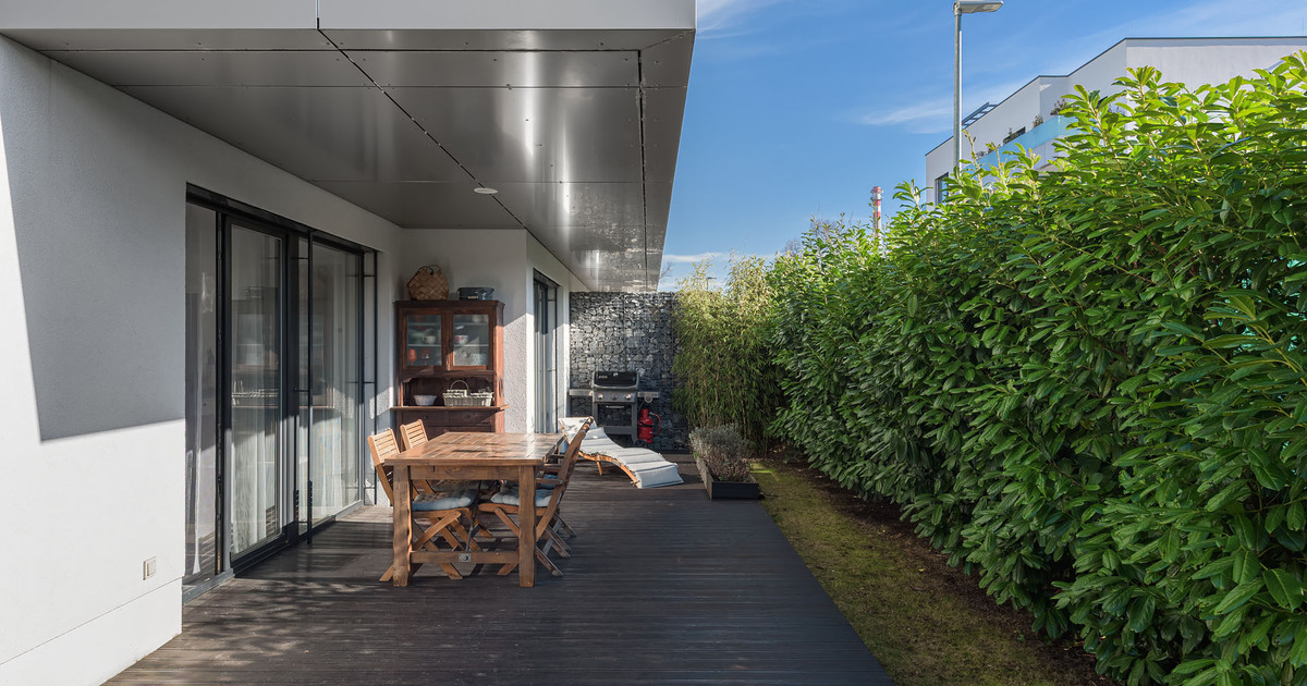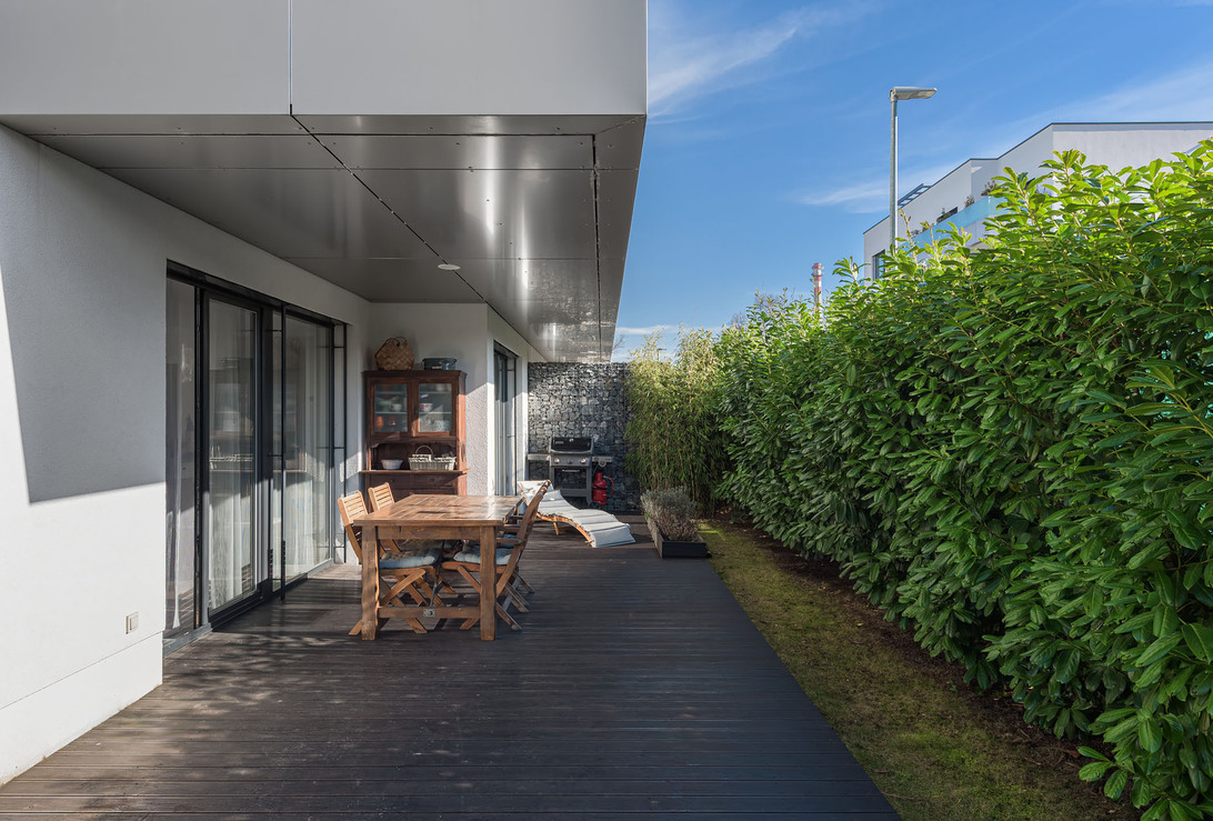 Современная двухкомнатная квартира с мини-кухней (3+км) и собственным просторным садом и террасой расположена в тихом районе Праги 5 – на улице Клоудова, в популярном жилом комплексе «Валтровка». Квартира находится на первом этаже четырехэтажного здания, построенного в 2018 году, с лифтом.Общая площадь квартиры составляет 98,1 кв. м. При входе сразу бросается в глаза естественная связь между интерьером и экстерьером. Из гостиной есть прямой выход на террасу и в тщательно ухоженный сад площадью 189,2 кв. м. Сад обрамлен вечнозелеными лавровыми вишнями, обеспечивающими уединение и приятную зелень круглый год.